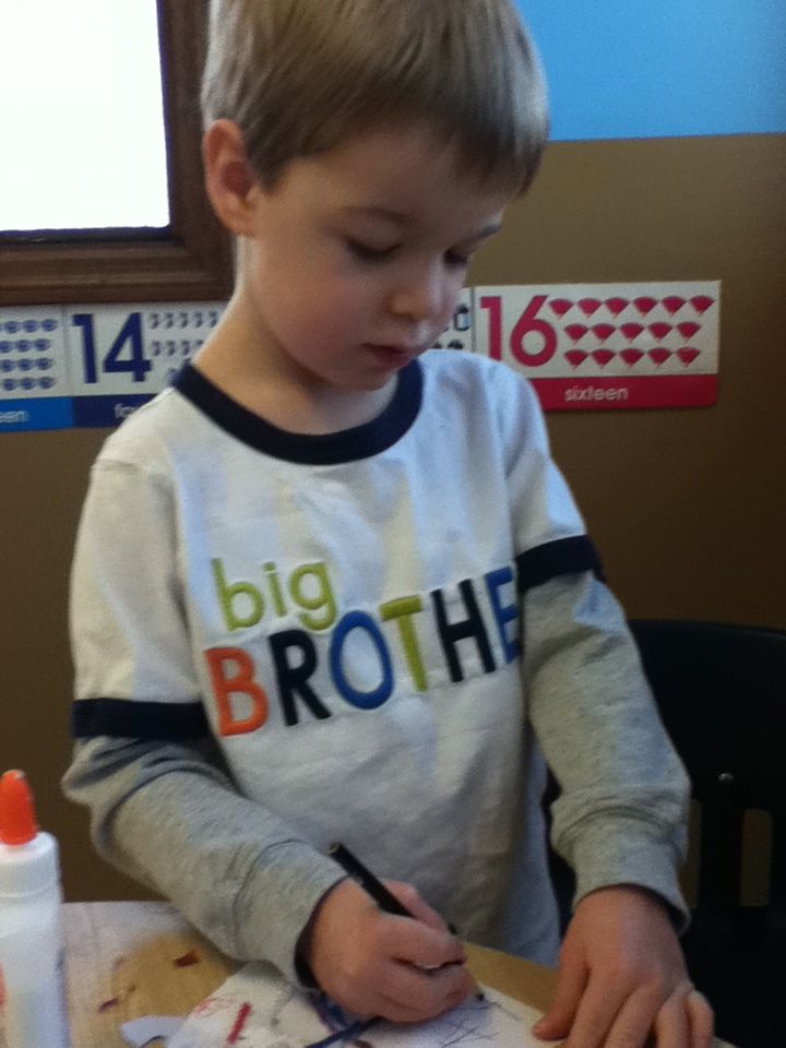 We completed our learning centers in partners today. The children did a great job helping each other and showing God's love to each other. We talked about how God gave us each different gifts; some friends might be better at counting and some friends might be better at letters. We discussed how Jesus doesn't love us more because of our gifts, but He loves us all the same! Learning to work together and help each other are social skills that will benefit the children throughout their lives!