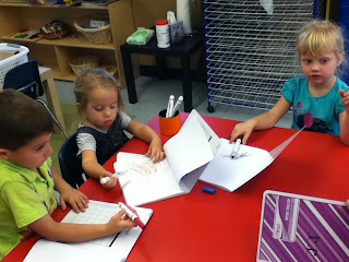We wrote in our journals today! The journals are special because it is a personal place the children can always write and draw. It provides documentation for writing development as well!