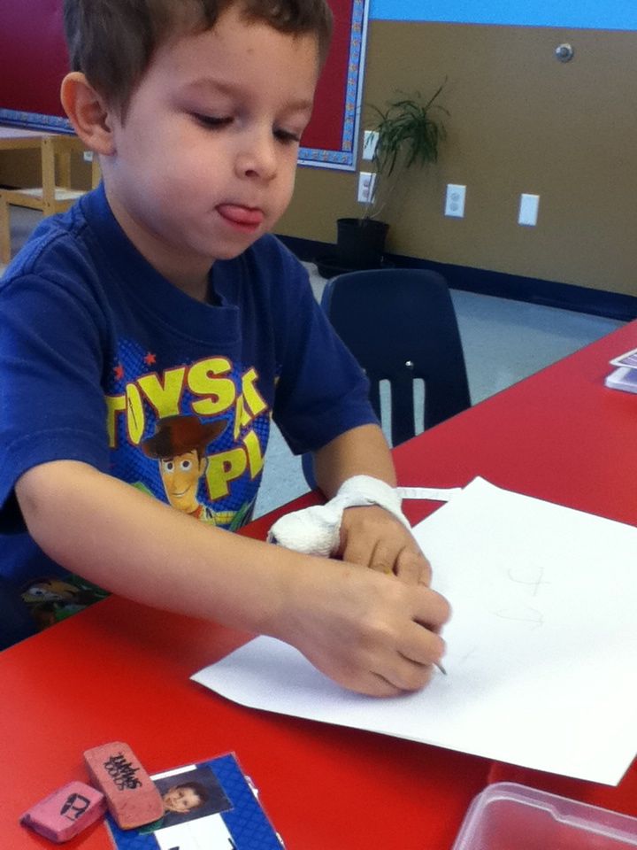 We practiced writing our names today! There are different stages to learning how to write your name. If your child writes his/her name, but it looks like scribbles or markings on a page to you, don't worry! This is an important part of the writing process! With time, practice, and encouragement you will see your child's writing become more defined.