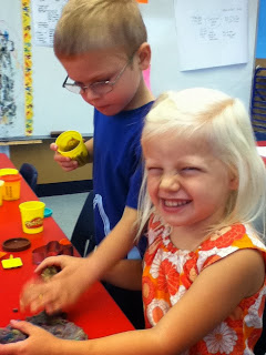 We love the new play dough. So much learning happens at the play dough table! We gain fine motor control, express creativity, and even practice letter recognition as we use the letter stamps in the dough.